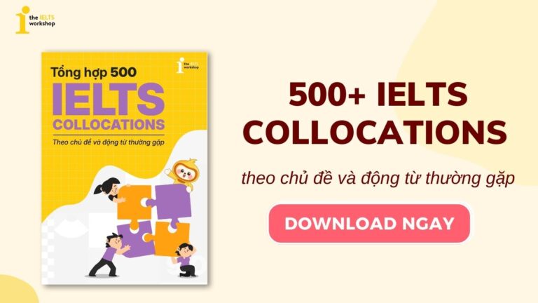 Thấu hiểu điều đó, The IELTS Workshop đã biên soạn Ebook Collocations theo chủ đề và động từ thường gặp trong IELTS – một cẩm nang được giúp bạn nâng cấp vốn từ của bản thân và ăn điểm ở tiêu chí Lexical Resource.