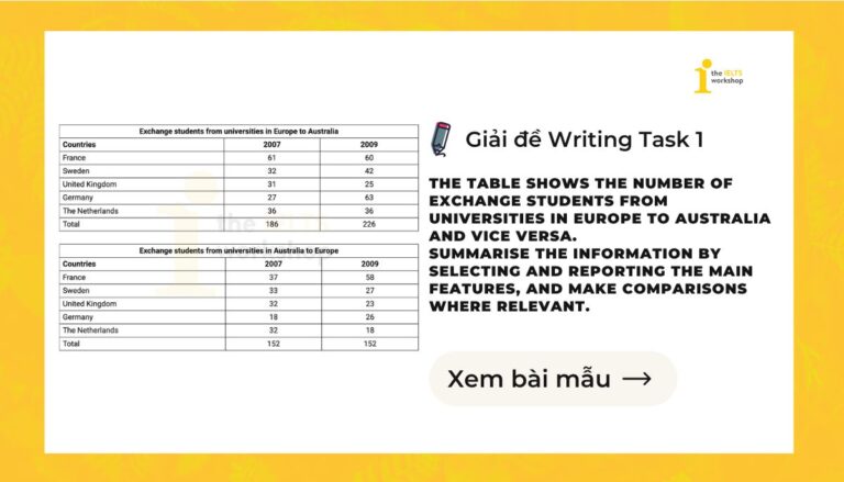 Sau khi đọc xong bài mẫu The table shows the number of exchange students from universities in Europe to Australia and vice versa, học viên sẽ có cái nhìn rõ ràng hơn về cách triển khai và hoàn thiện một bài IELTS Writing Task 1 dạng Table chuẩn cấu trúc. Hãy dành thời gian đọc kỹ hướng dẫn của cô Nguyễn Kiều Trinh và ghi nhớ những điểm quan trọng để từng bước nâng cao kỹ năng Writing.