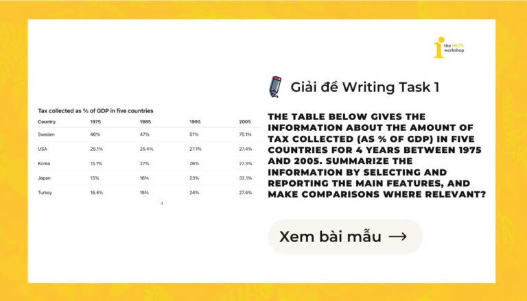 Thông qua sự hướng dẫn chi tiết của thầy Đỗ Quang Thành, bài mẫu Tax collected in five countries for 4 years between 1975 and 2005 sẽ hỗ trợ người học nắm vững cách triển khai ý tưởng cũng như hoàn thiện bài IELTS Writing Task 1 theo đúng cấu trúc và tiêu chí chấm điểm.