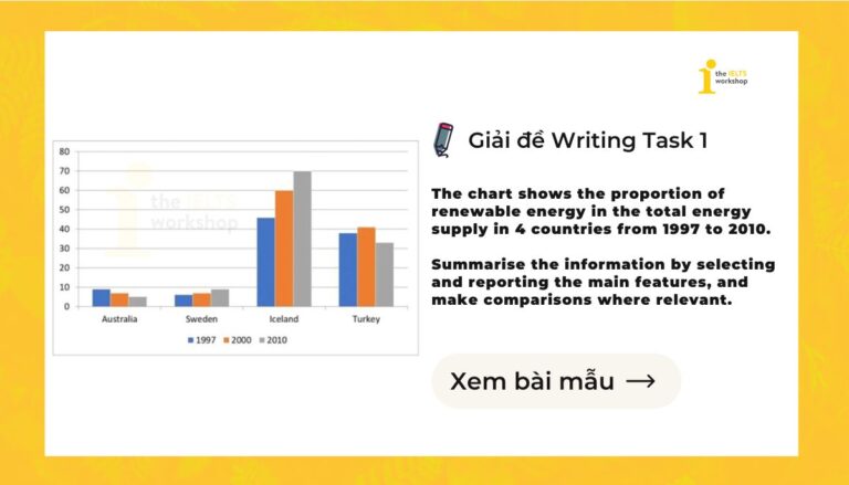 Bài mẫu chủ đề Proportion of renewable energy in the total energy supply in 4 countries from 1997 to 2010 được biên soạn bởi cô Đinh Thảo Chi sẽ giúp người học nắm vững cách triển khai ý, so sánh số liệu và hoàn thiện một bài IELTS Writing Task 1 chuẩn cấu trúc và tiêu chí chấm điểm IELTS.
